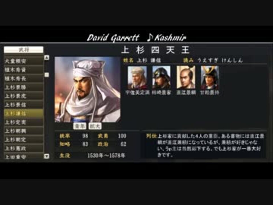 上杉家プレイ If playback doesn't begin shortly, try restarting your device Videos you watch may be added to the TV's watch history and influence TV recommendations To avoid this, cancel上杉謙信(うえすぎけんしん)『信長の野望・創造パワーアップキット』武将データ 越後の戦国大名。 為景の次男。 上杉憲政から関東管領職を譲られ、上杉姓を名乗る。 「毘」の軍旗を翻して疾駆する姿は軍神と恐れられた。 通称「越後の龍」。上杉景勝(うえすぎかげかつ)『信長の野望・創造パワーアップキット』武将データ 出羽米沢藩主。 長尾政景の子。 上杉謙信の養子となった。 謙信の死後、御館の乱に勝利して家督を継いだ。 関ヶ原合戦では西軍に属し、最上・伊達軍と戦った。